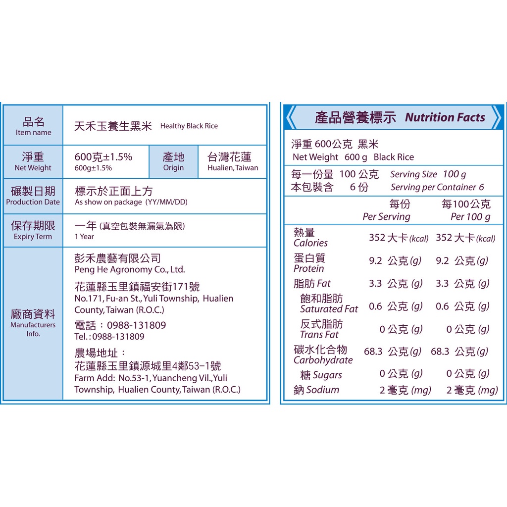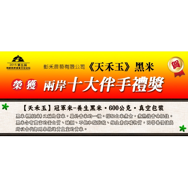 【天禾玉】冠軍米-養生黑米3包《600公克真空包裝》兩岸金獎