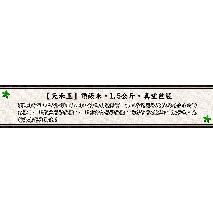【天禾玉】頂級米-頂級白米x9包《1.5公斤真空包裝》免運 (國際大獎)