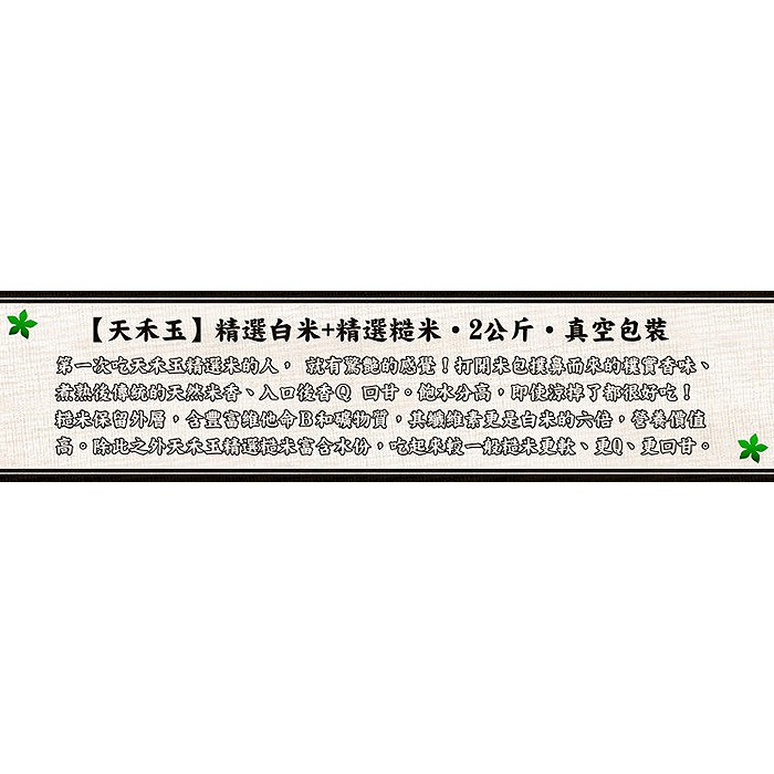 【天禾玉】冠軍米組合-精選白米x5包+精選糙米x1包《2公斤真空包裝》免運 (國際大獎)