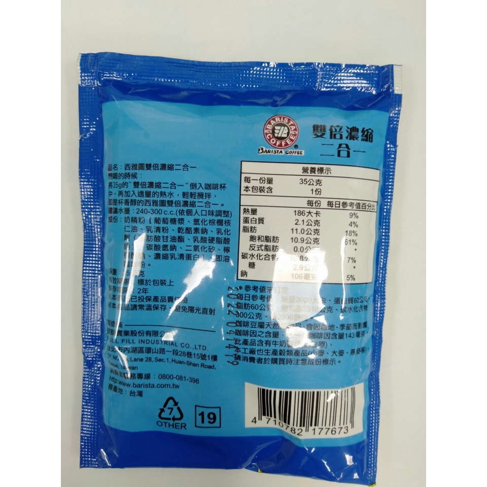 西雅圖 雙倍濃縮無加糖2合1(35g)/3合1 咖啡(41g)(即期良品)