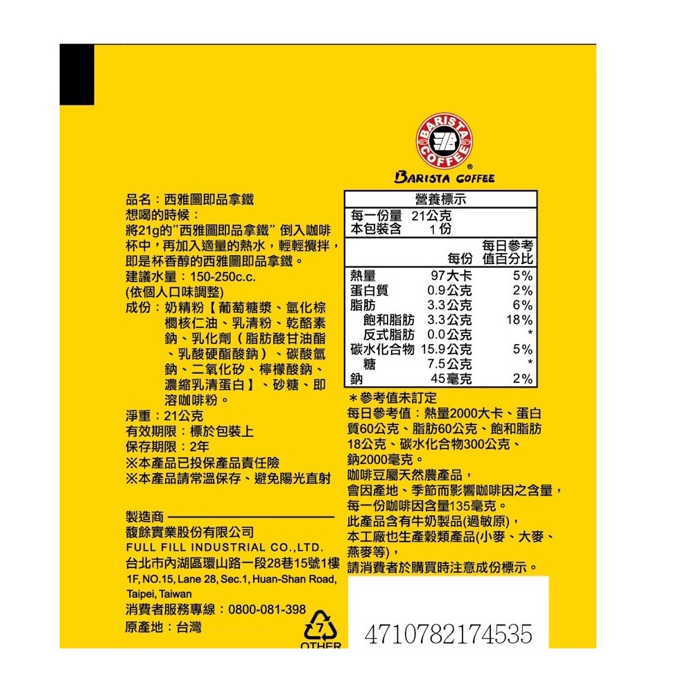 BARISTA COFFEE 西雅圖即品拿鐵3合1咖啡21g(50入/100入/200入)現貨
