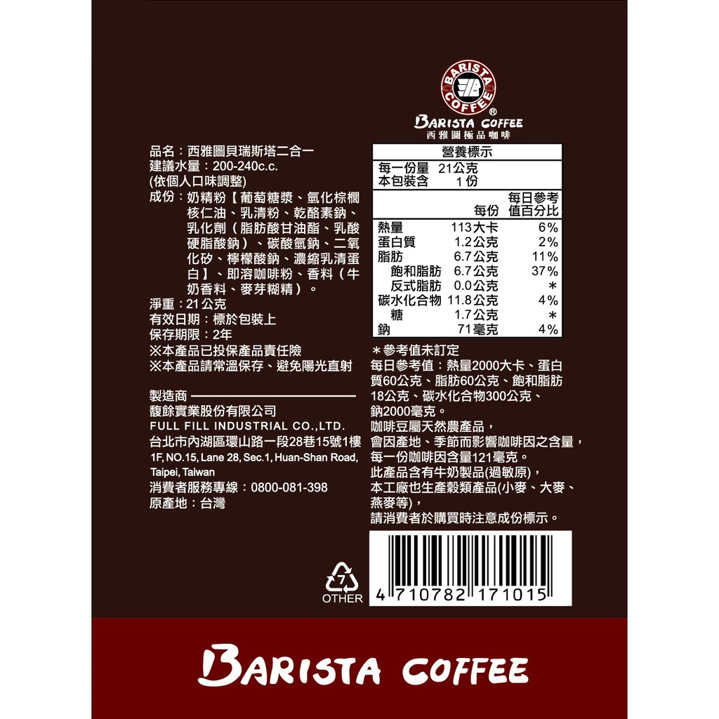 西雅圖 貝瑞斯塔無糖2合1咖啡21g(50入/100入)(冷熱皆宜)