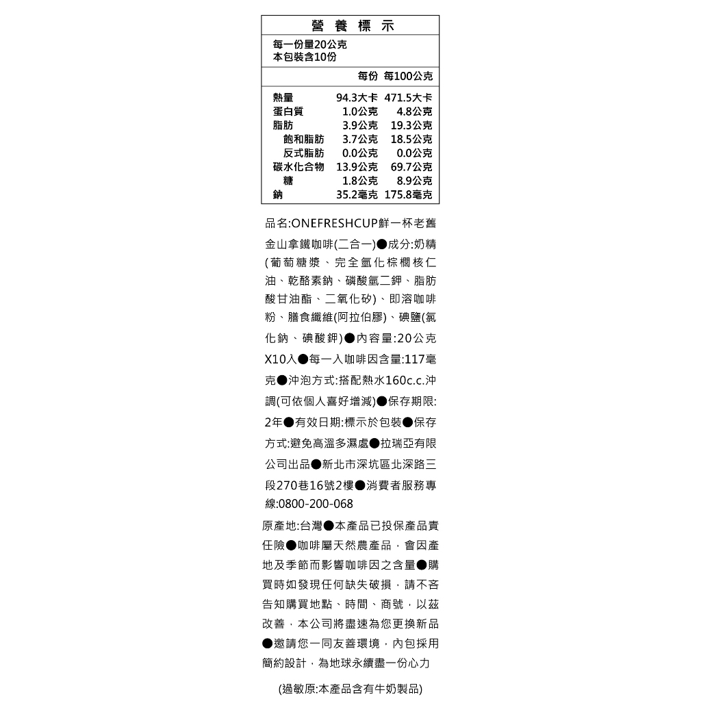 鮮一杯 即溶系列20g 老舊金山拿鐵二合一咖啡(20gx10入)袋裝