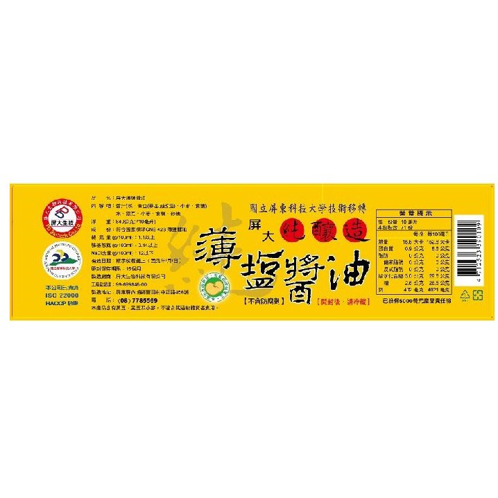 屏大 薄鹽醬油 禮盒組 710mlx2瓶/組/不含防腐劑