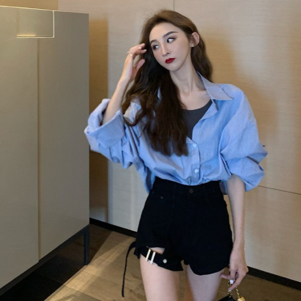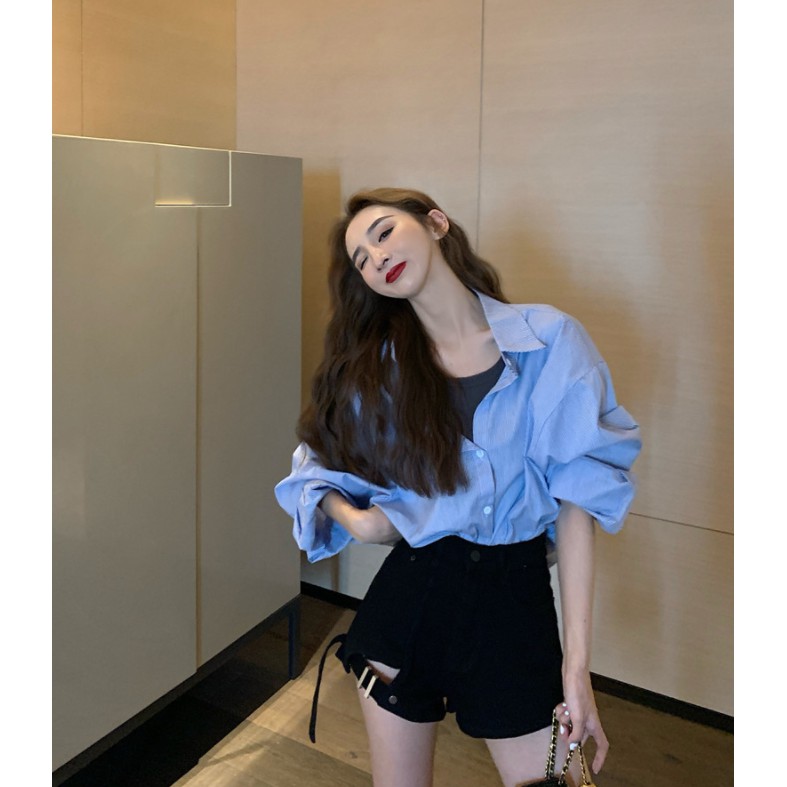 夏新款大尺碼韓版闊腿褲高腰a字熱褲破洞牛仔短褲女高腰合身百搭顯瘦學生熱褲 短褲女生(XGN6509)【FIZZE】