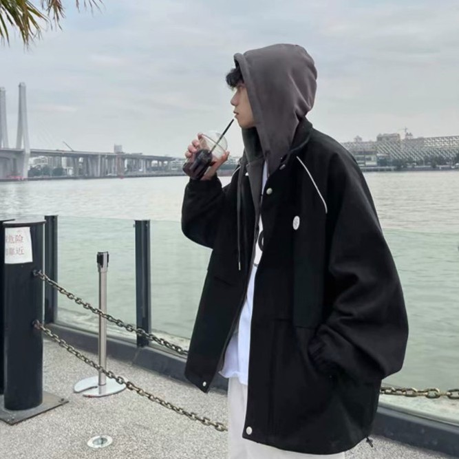 假2件棒球外套 男外套 韓版防風情侶外套 教練夾克 男生女生撞色外套(MLPJK65)【FIZZE】