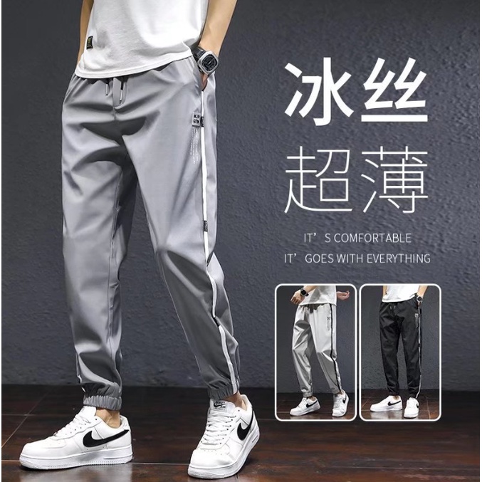 涼感長褲男 束腳褲 男生長褲夏季薄款冰絲長褲 薄款運動速乾 涼感褲 縮口褲 冰絲涼感褲(APK127)【FIZZE】