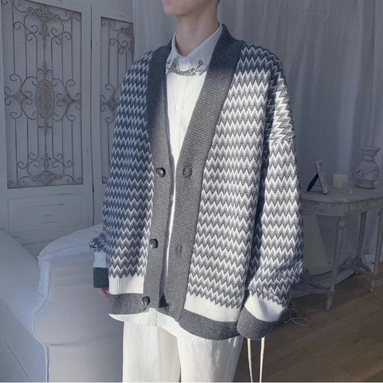 格紋針織開衫秋冬季毛衣潮 韓版學生外套男休閒長袖慵懶風寬鬆潮流帥氣BWJB38【FIZZE】