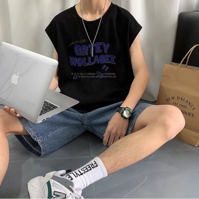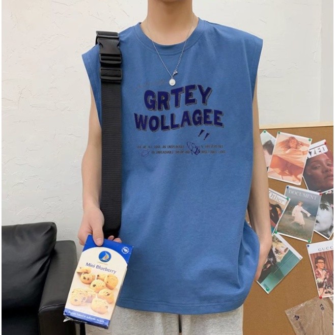 潮牌無袖背心 薄款韓版街頭背心男 背心 無袖背心男 運動籃球背心 圓領背心 坎肩T恤(MTSC98)清【FIZZE】