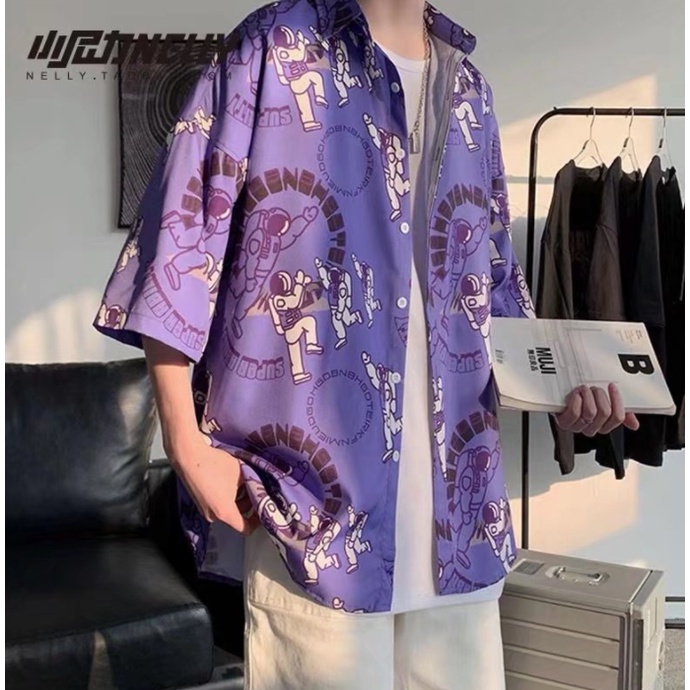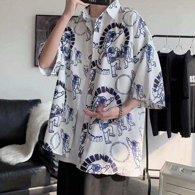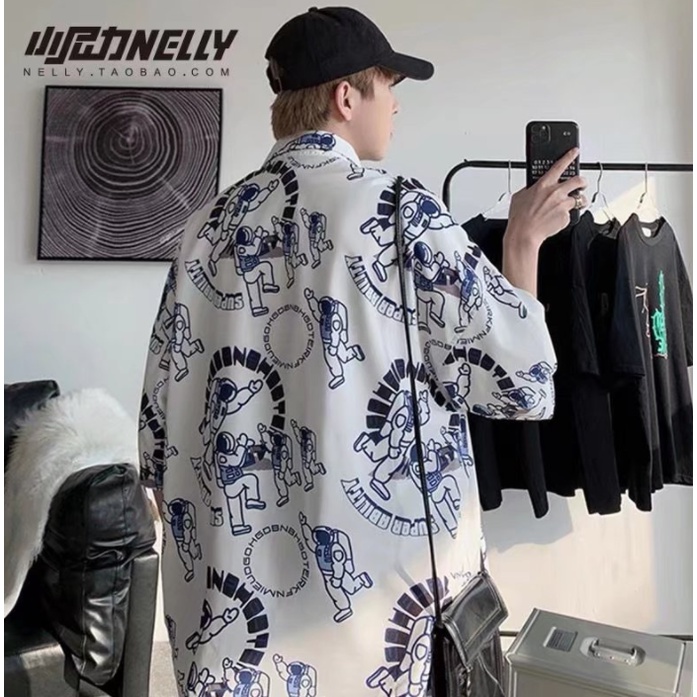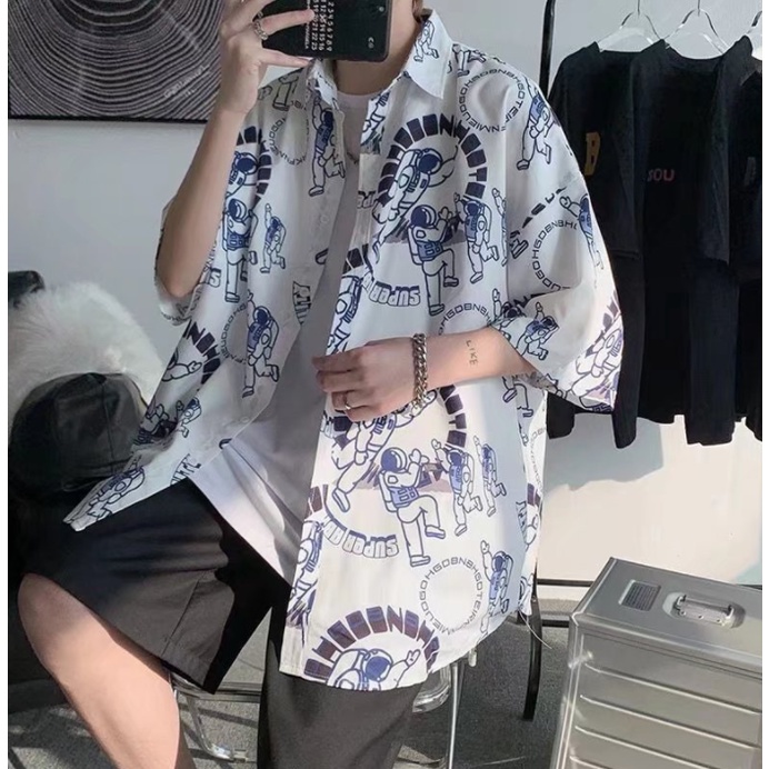 男女同款襯衫 襯衫男 短袖襯衫男 復古襯衫情侶襯衫短 袖襯衫太空人襯衫(MN171)【FIZZE】