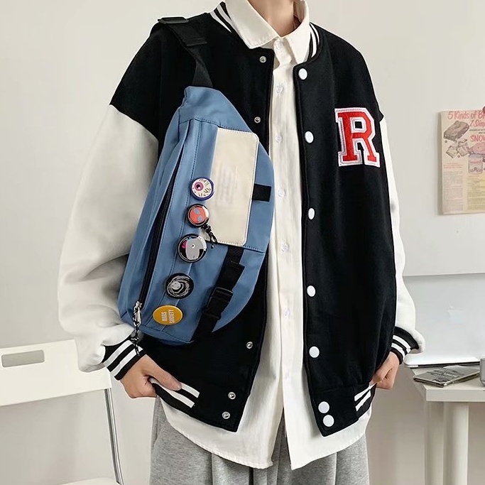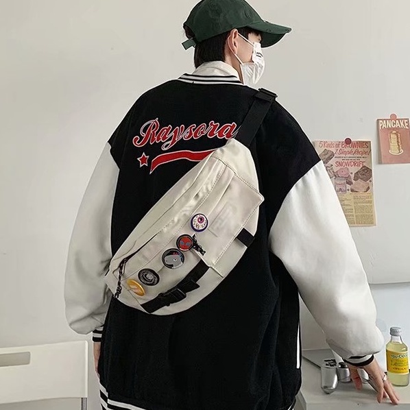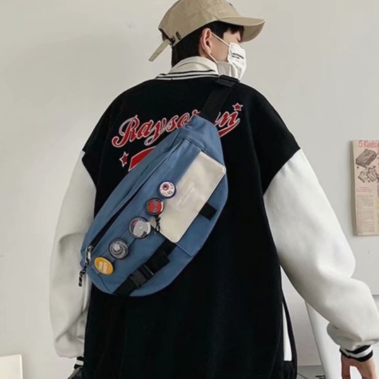 男女同款帆布包 5色可選 胸包 腰包 日系ins風可愛軟妹單肩包 斜挎包女運動腰包 (WWB20)【FIZZE】