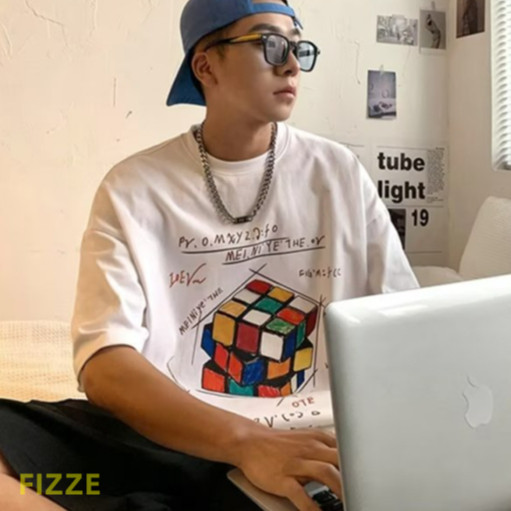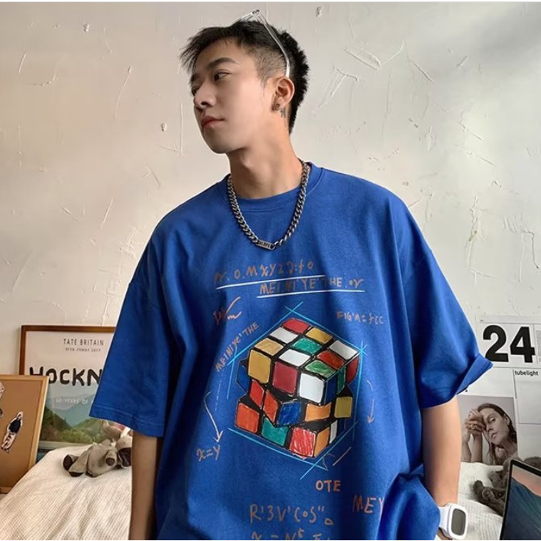 大尺碼 印花t 情侶 魔術方塊印花T 日系 寬鬆 短袖T恤 情侶t 短袖男 男t 男生T恤ATC2302【FIZZE】