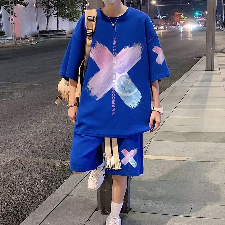 男生套裝 抽繩短褲 短袖套裝情侶套裝 男生衣服 五分褲男 直筒短褲 短t 素t 圓領上衣(ATXB510【FIZZE】