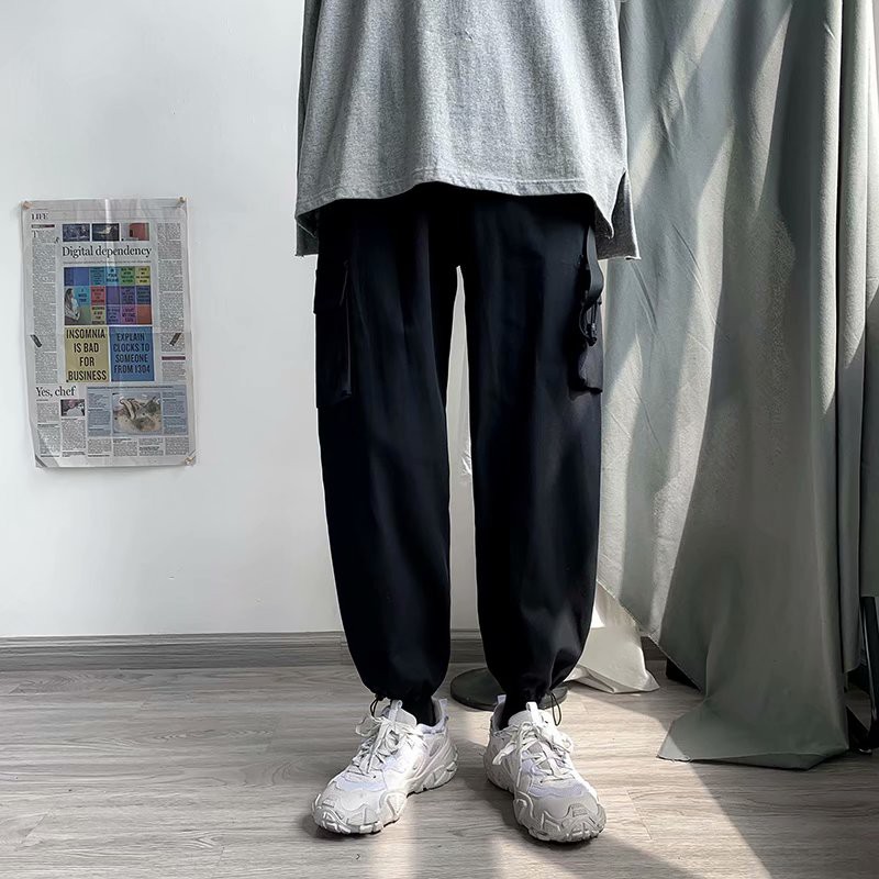 工裝褲 工作褲 休閒長褲 韓版長褲男生薄款男褲子工裝褲男士潮牌束腳韓版哈倫九分休閒褲男(MG821)【FIZZE】