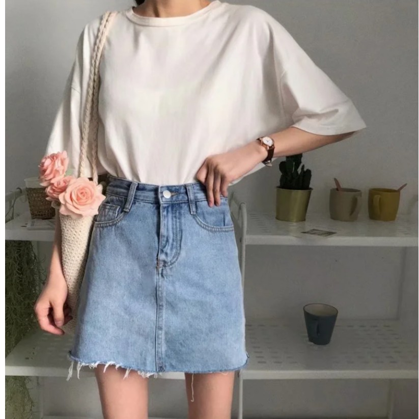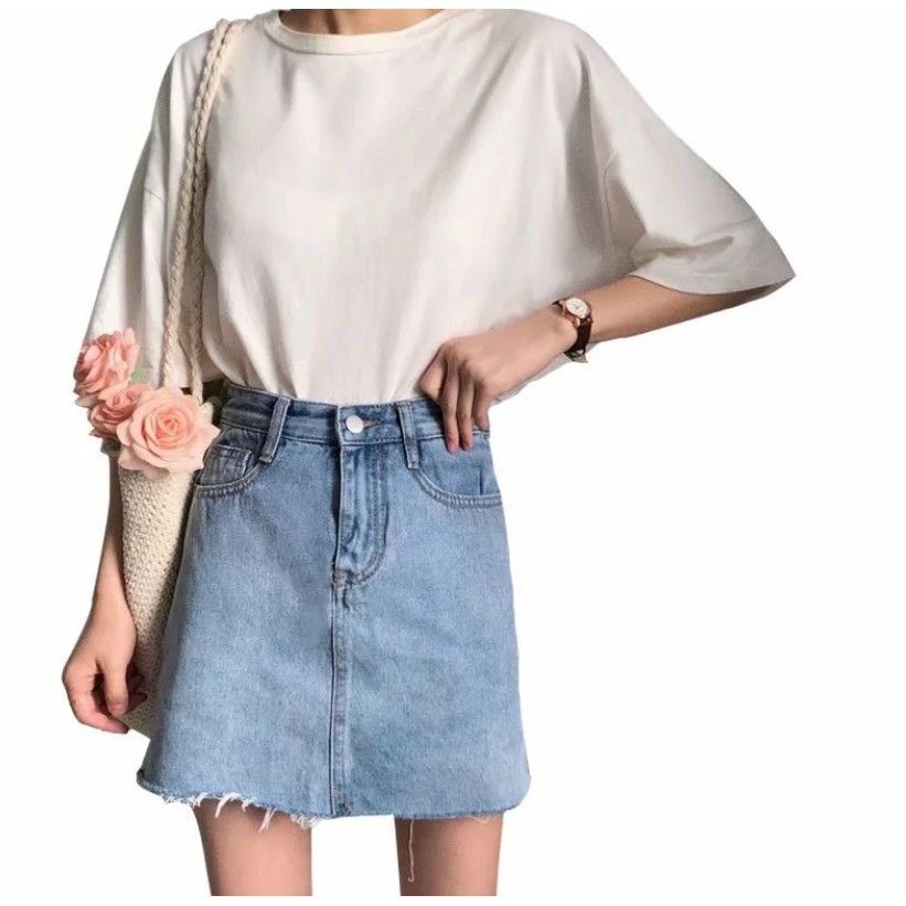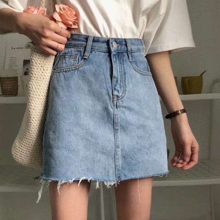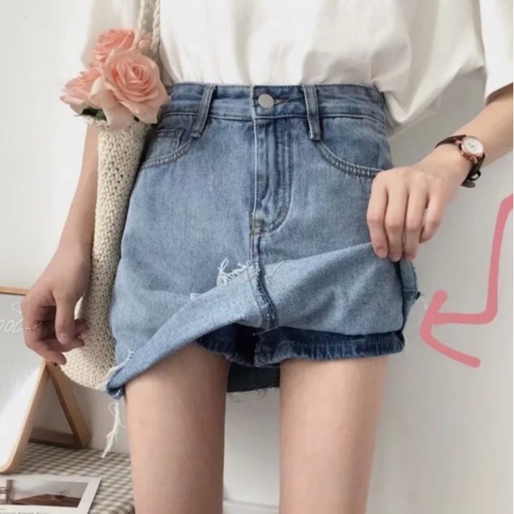 大尺碼防走光牛仔裙 韓版修身顯瘦a字短裙毛邊半身裙牛仔褲裙 半身裙 (XGM5301)【FIZZE】