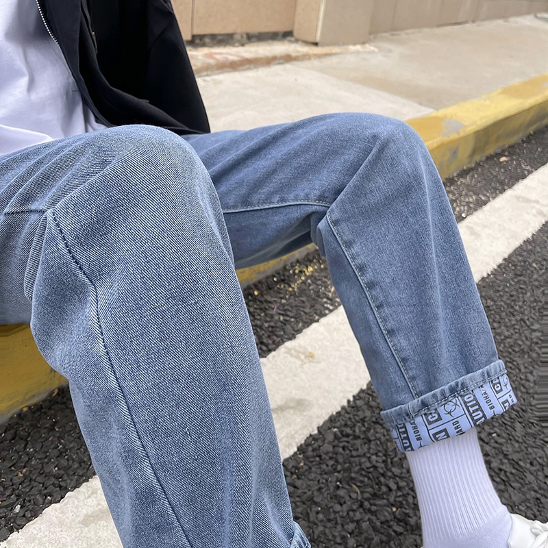 韓版潮流水洗牛仔褲男寬鬆時尚個性潮牌直筒褲春秋新款帥氣老爹褲(CRB9155)【FIZZE】