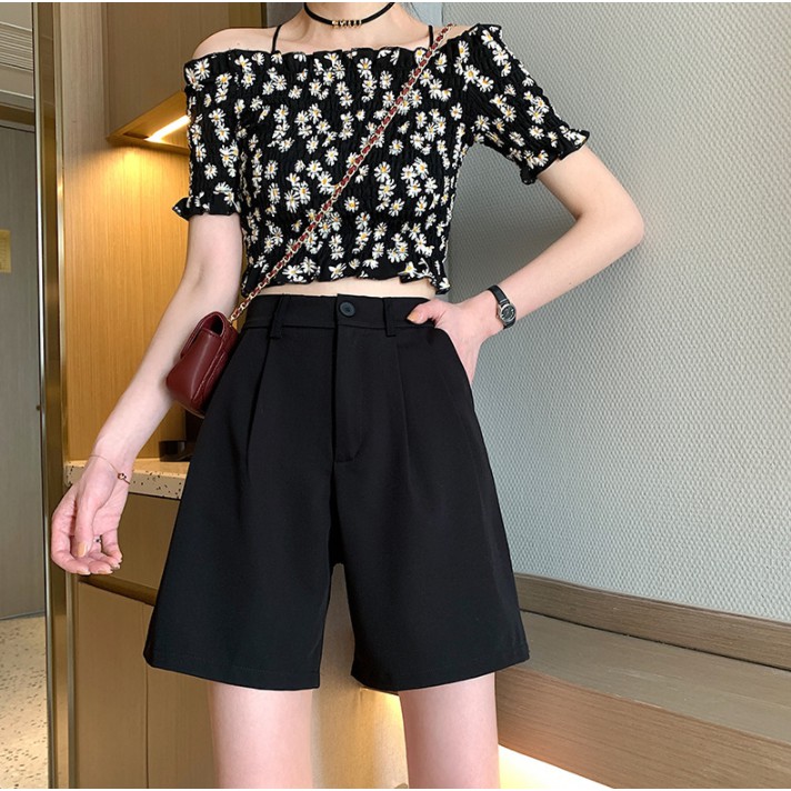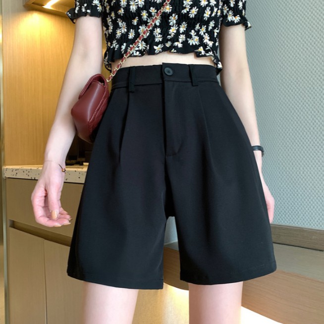 大尺碼短褲 五分褲 韓版闊腿褲 西裝短褲 女夏季寬鬆顯瘦外穿短褲 高腰闊腿直筒中褲(MNZJ709)【FIZZE】
