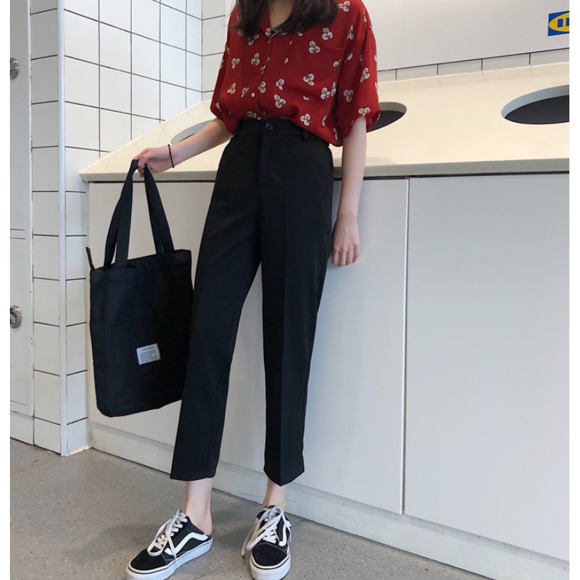 S~2XL加大尺碼 韓版雪紡褲子 九分褲寬鬆黑色長褲 薄款西裝褲 (XGLB942)【FIZZE】