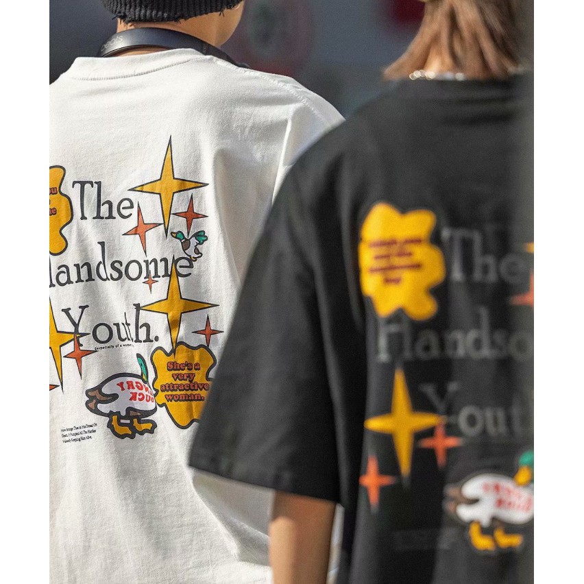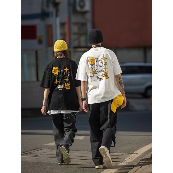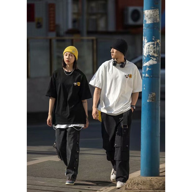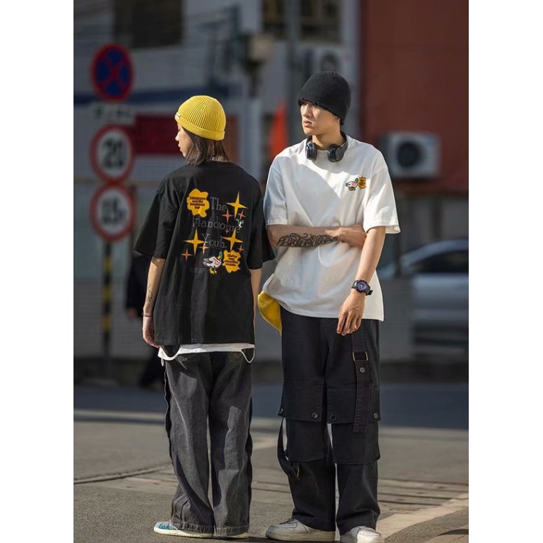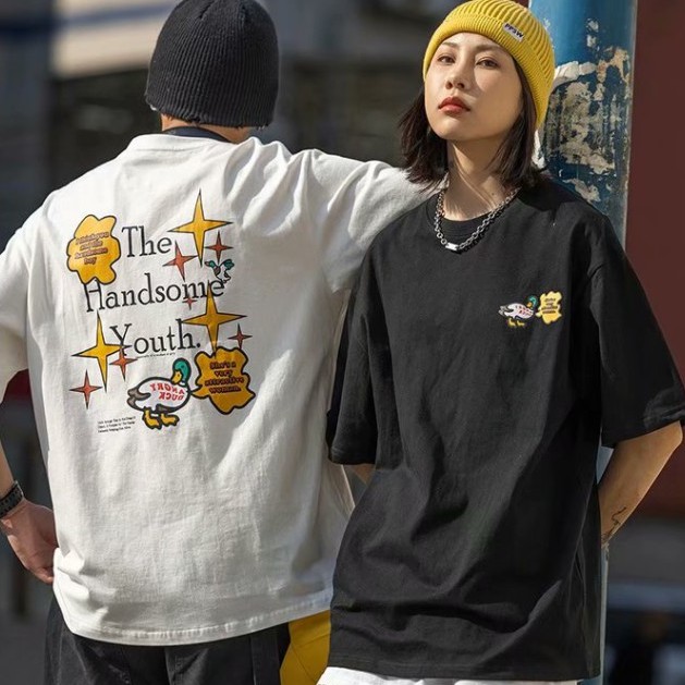 情侶裝 潮T 班服 情侶t 印花圓領T恤 韓版短袖T恤韓版 寬鬆 嘻哈 短版上衣 短T(MAZNW48)