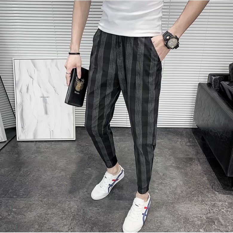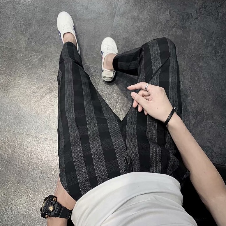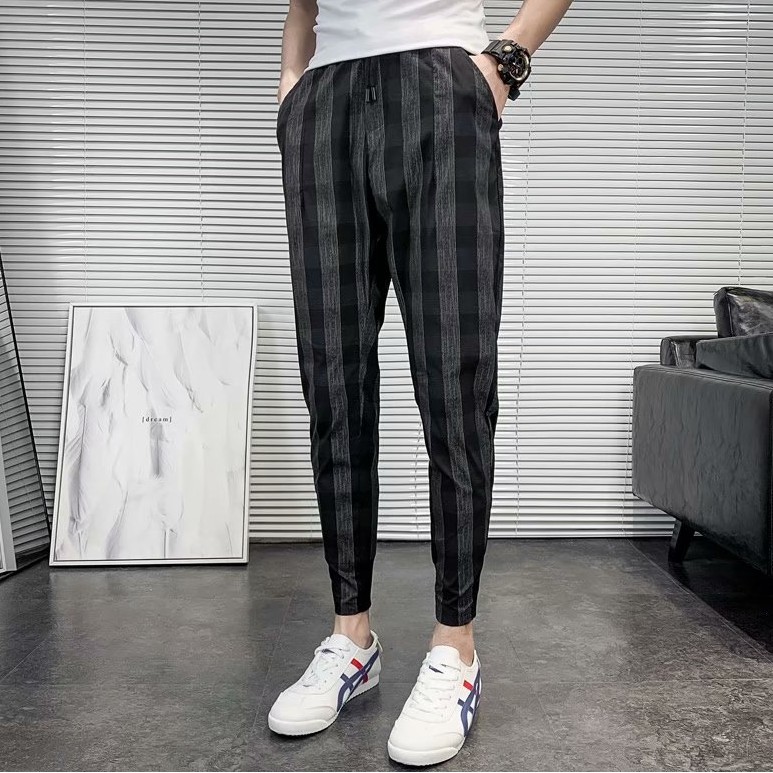 格紋 九分褲 硬挺 彈性布料 素色 休閒長褲 窄管 格子褲 潮流必備 買到賺到 (MYJY61)【FIZZE】