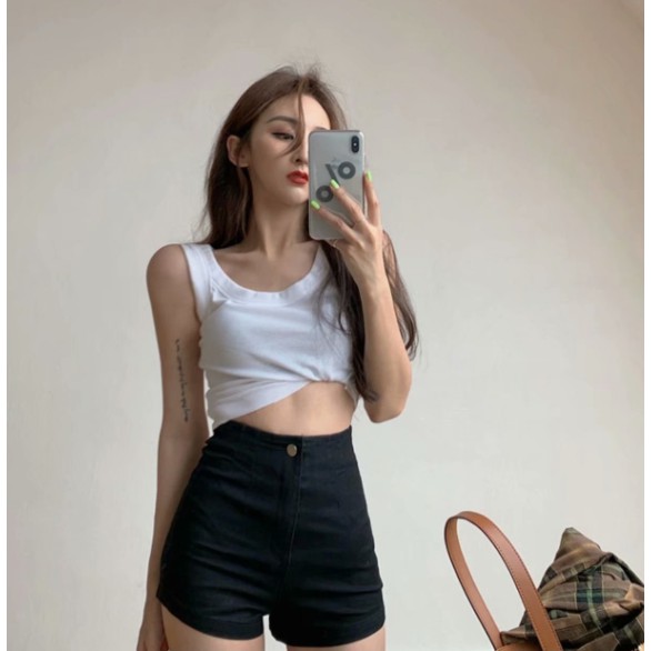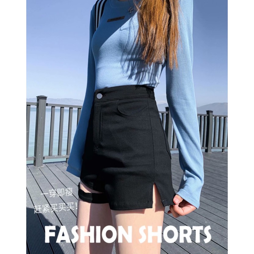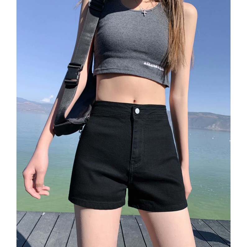 (2款可選)黑色牛仔短褲女直筒顯瘦新款破洞高腰彈力修身闊腳褲潮ins(XGX223)【FIZZE】