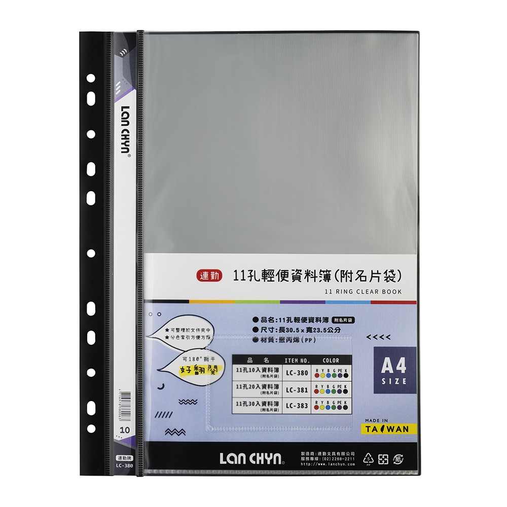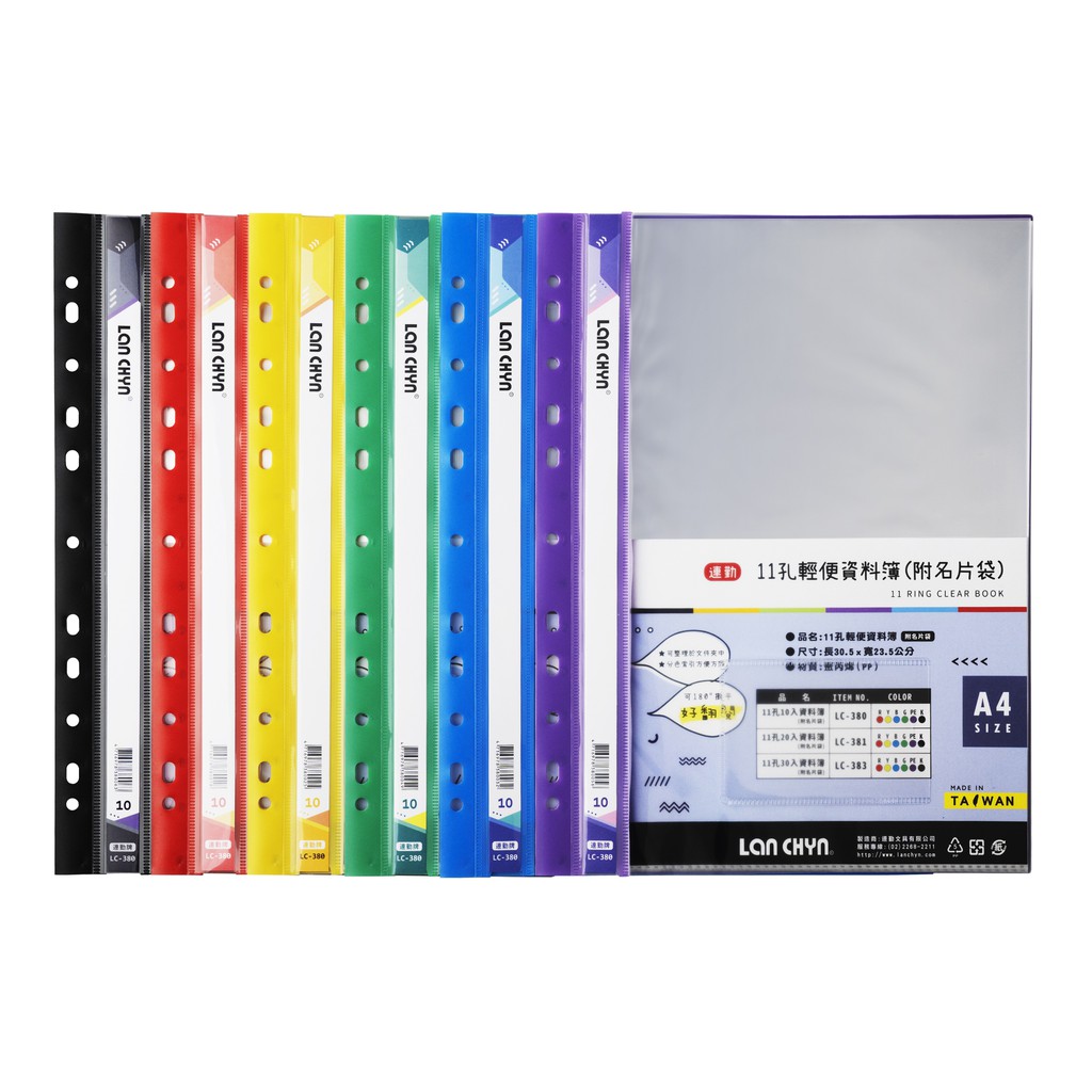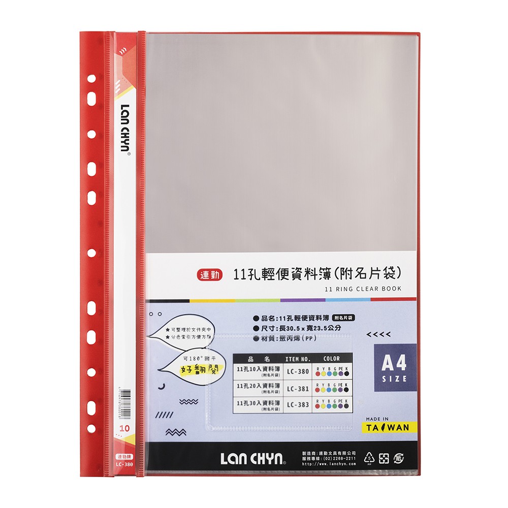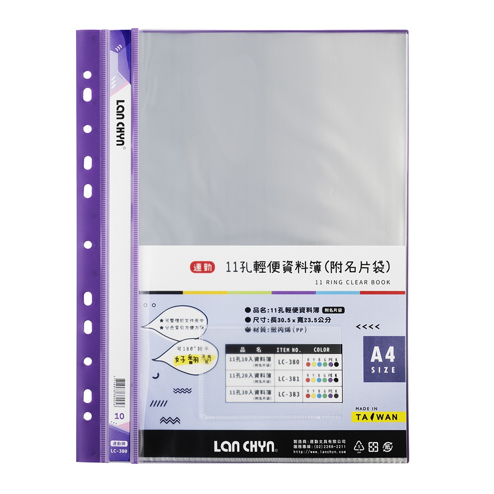 連勤 PP 11孔輕便資料簿 10入 20入 30入 附名片袋|LC-380 LC-381 LC-383