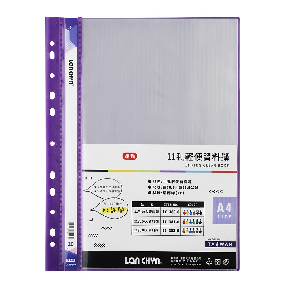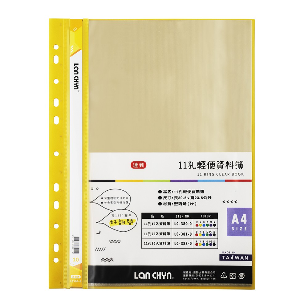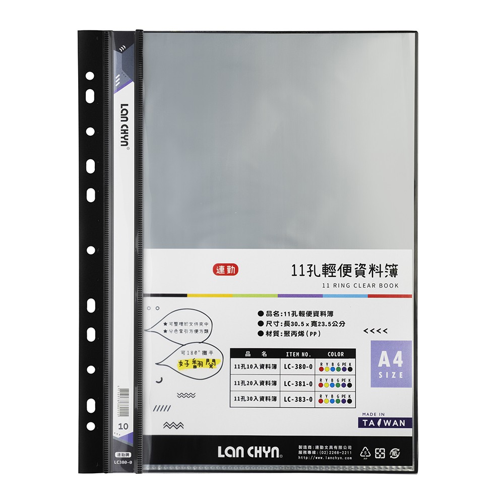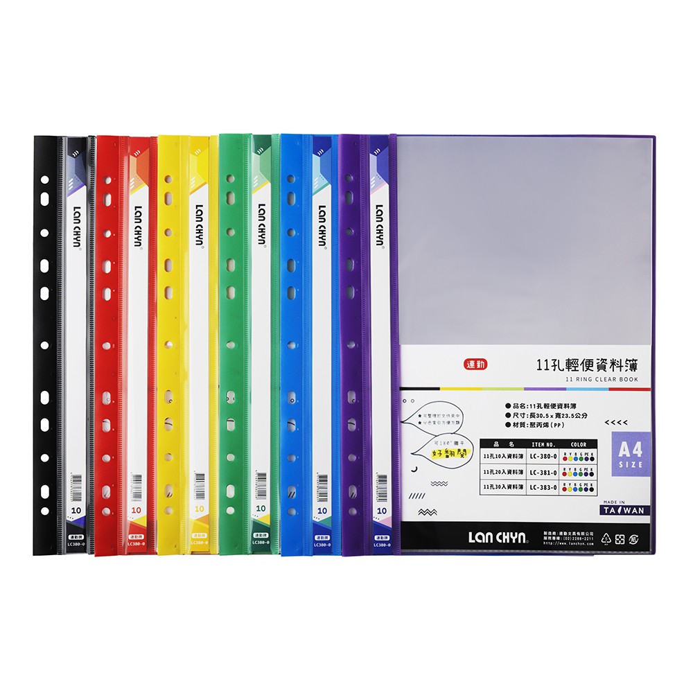 連勤 PP 11孔輕便資料簿 10入 20入 30入 附名片袋|LC-380 LC-381 LC-383