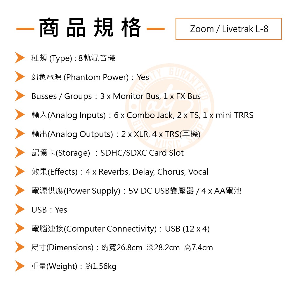 Zoom / Livetrak L-8 8軌數位混音機/USB 2.0錄音介面(iOS可用)【ATB通伯樂器音響】