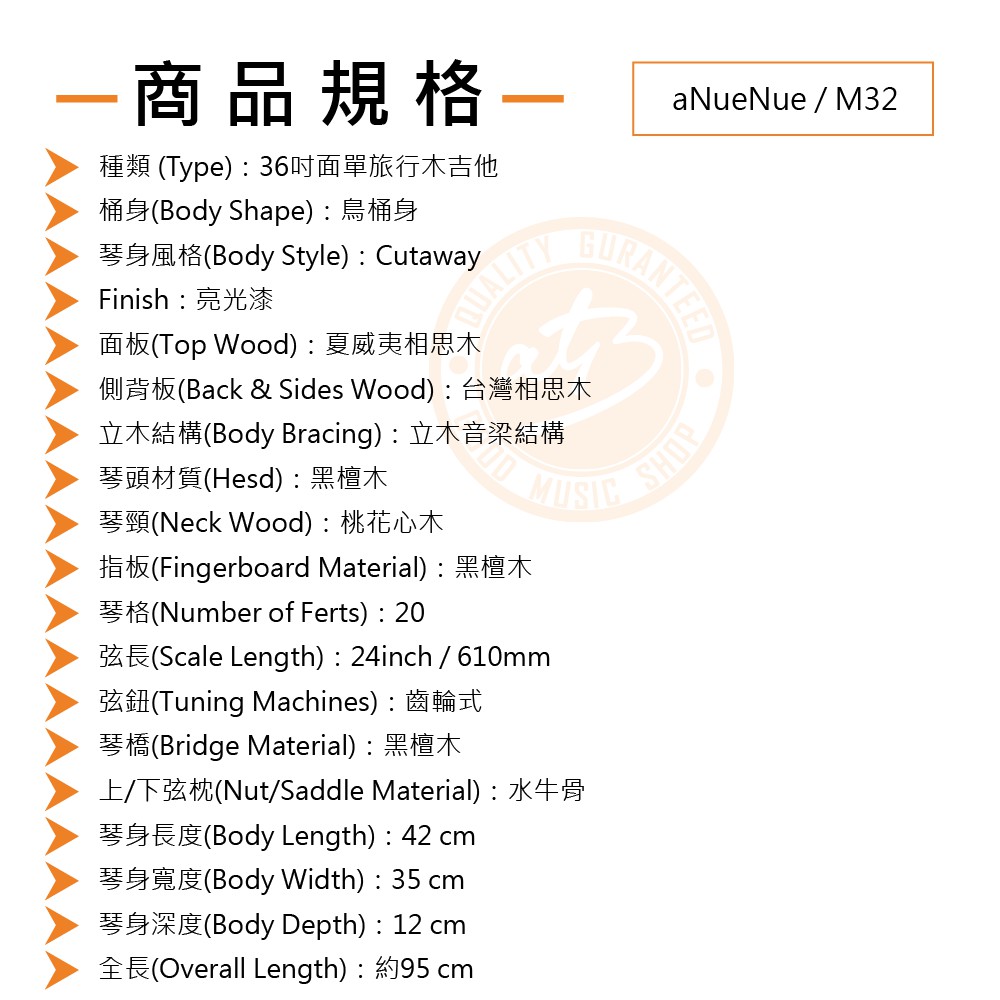 aNueNue / M32 36吋面單旅行木吉他【樂器通】