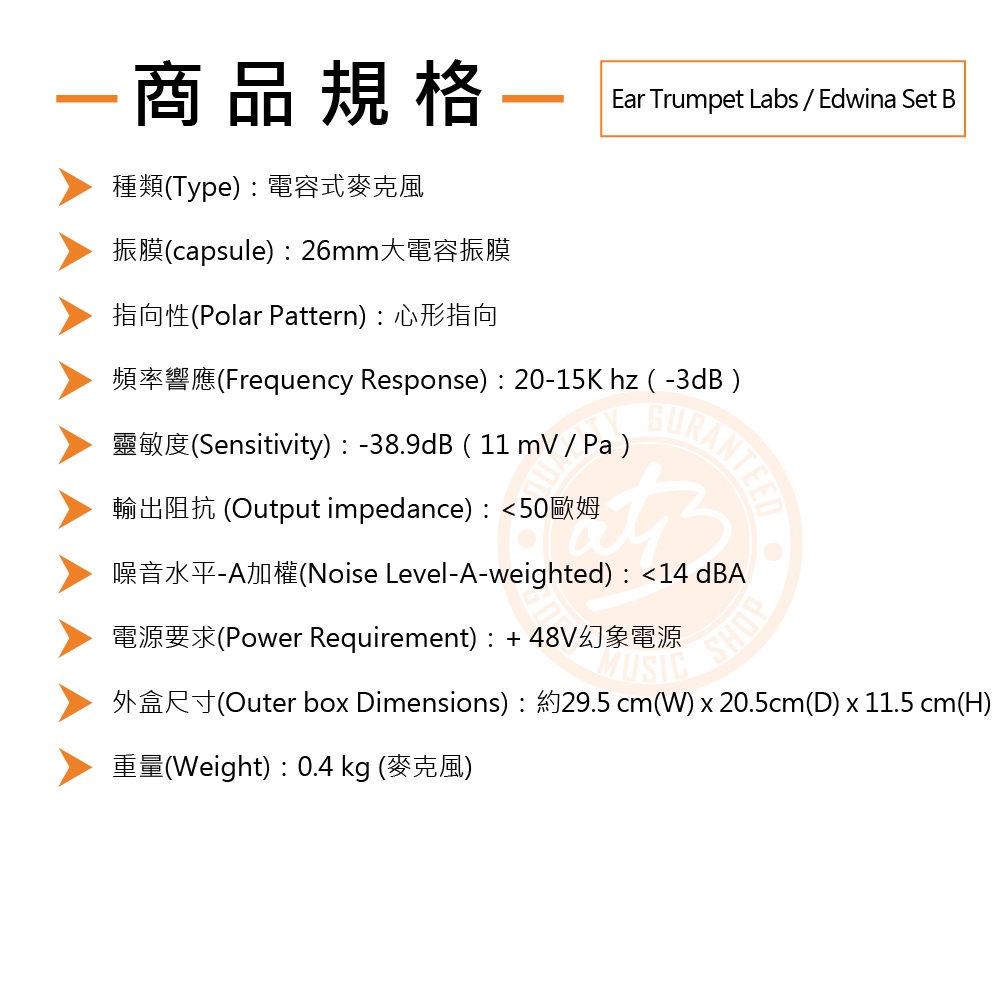 Ear Trumpet Labs / Edwina Set B 手工復古 電容式麥克風套裝組【樂器通】