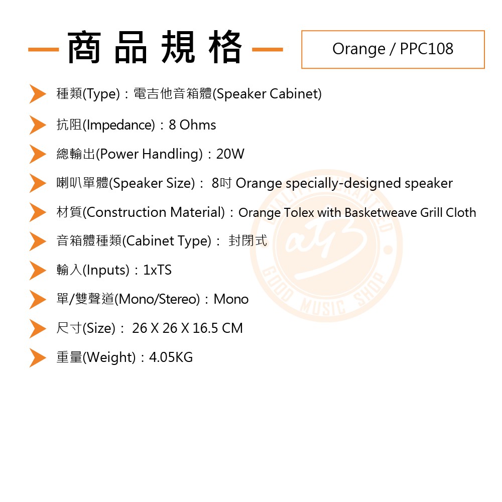 Orange / PPC108 20W電吉他音箱體【樂器通】