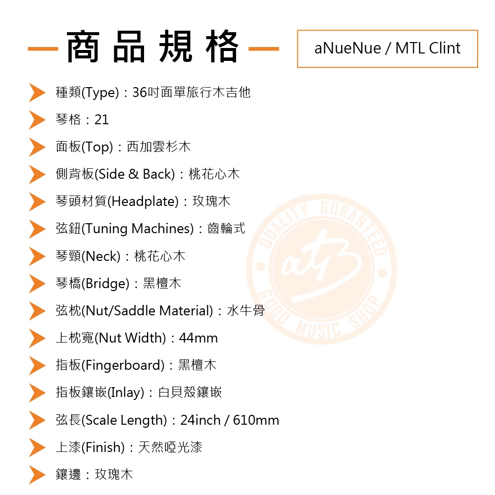 aNueNue / MTL Clint 聯名款 36吋面單旅行木吉他(雲杉木面板) 彩虹人官方認證【樂器通】