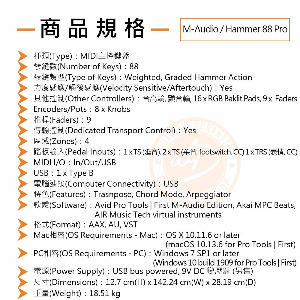 M-Audio / Hammer 88 Pro 88鍵MIDI鍵盤(iOS可用)【樂器通】
