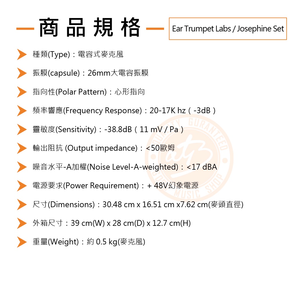 Ear Trumpet Labs / Josephine Set 復古手工 電容式麥克風套裝組【樂器通】