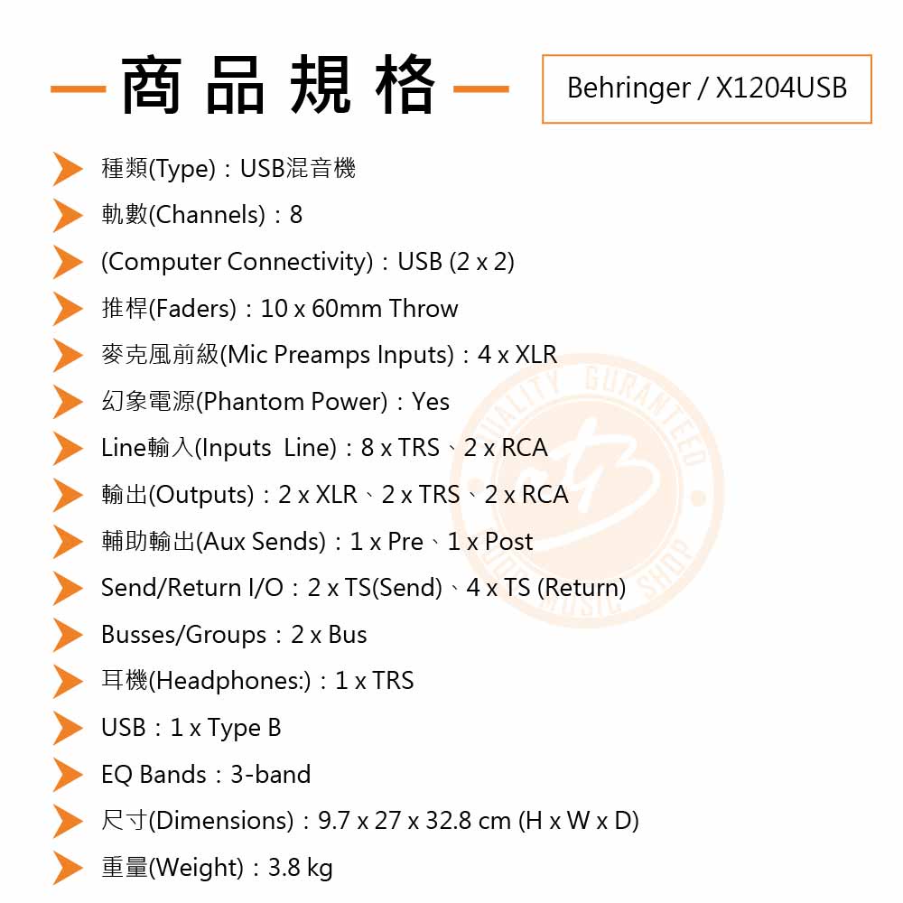 Behringer / X1204USB 8軌USB混音機【ATB通伯樂器音響】