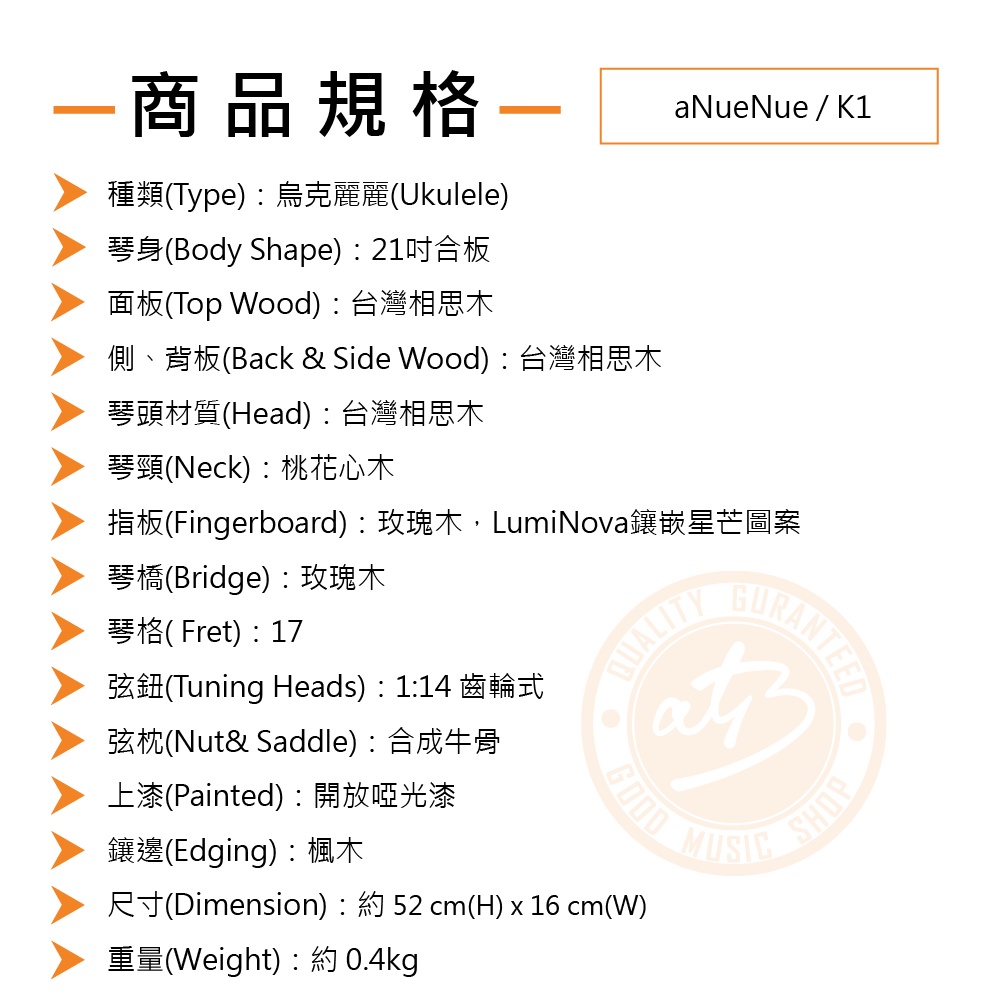 aNueNue / K1 入門款 21吋烏克麗麗(台灣相思木) 彩虹人官方認證【樂器通】