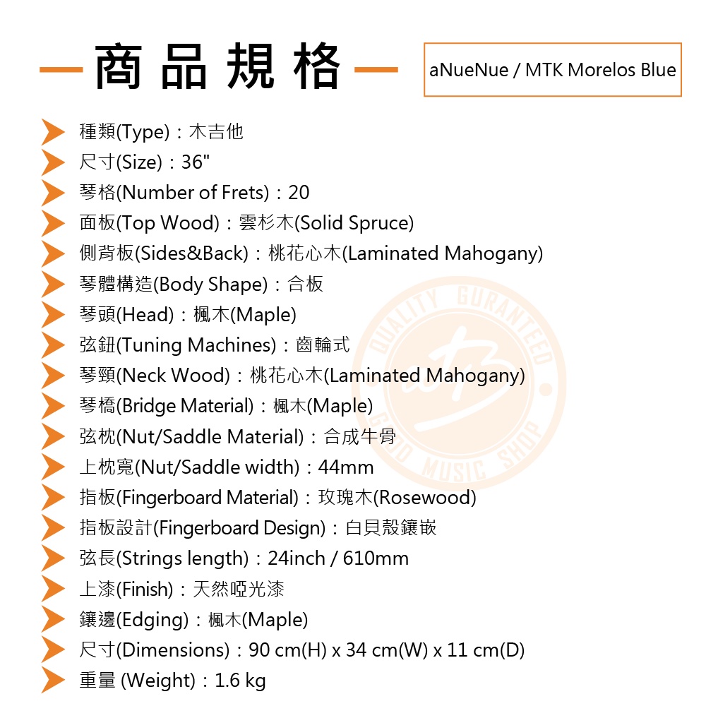 aNueNue / MTK Morelos Blue 聯名款 36吋旅行木吉他(雲杉木面板) 彩虹人官方認證【樂器通】