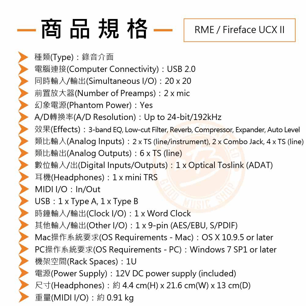 RME / Fireface UCX mk2 20in/20out USB錄音介面(iOS可用)【樂器通】