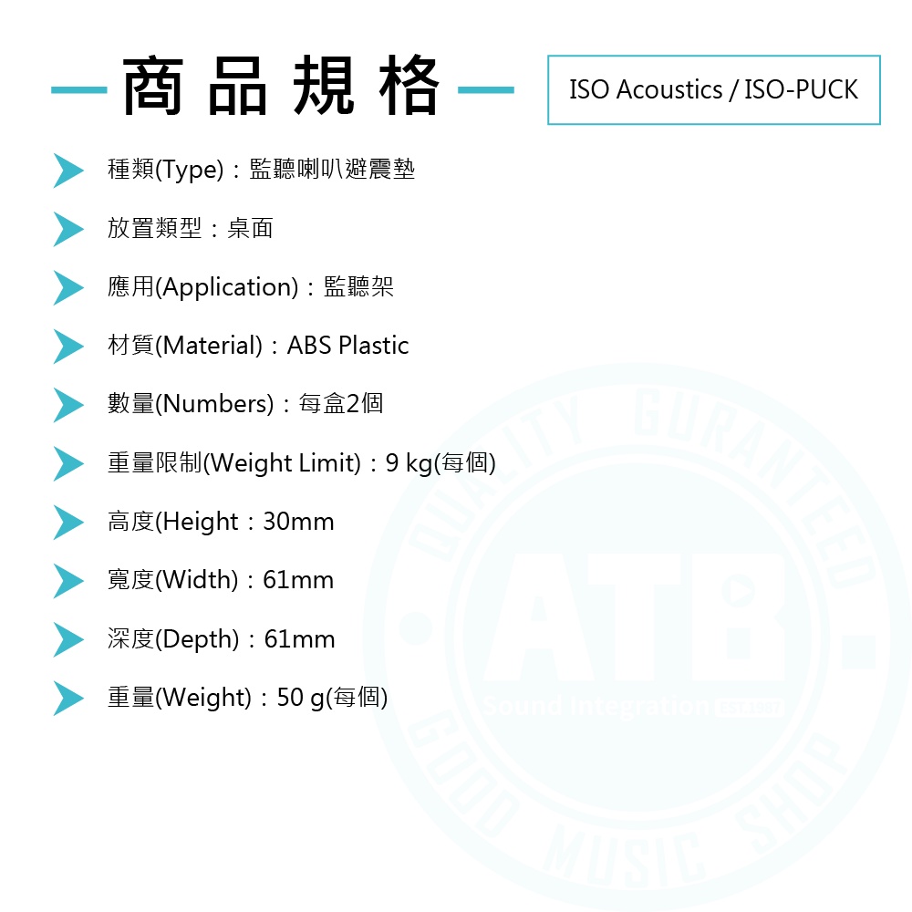 ISO Acoustics / ISO-PUCK 監聽喇叭避震墊(2顆/組)【ATB通伯樂器音響】