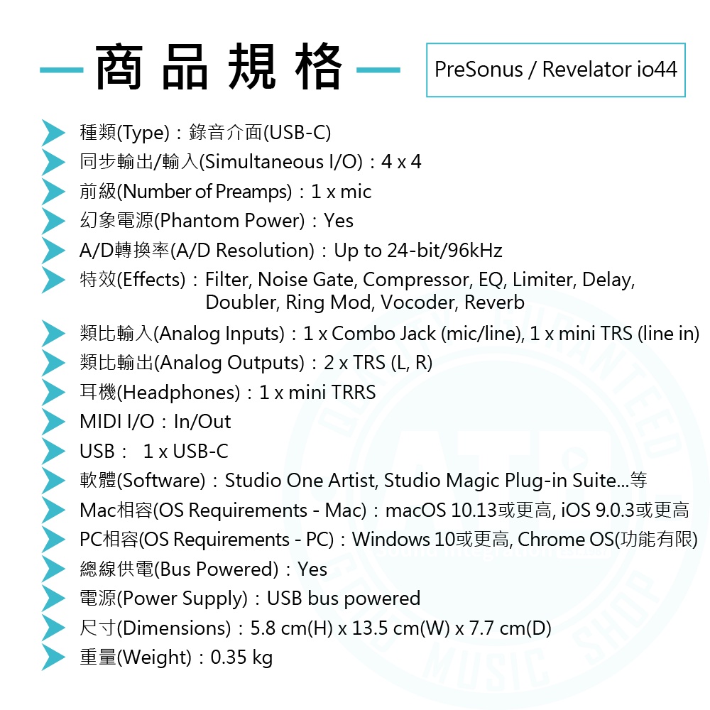 PreSonus / Revelator io44 3in/2outUSB-C錄音介面【ATB】