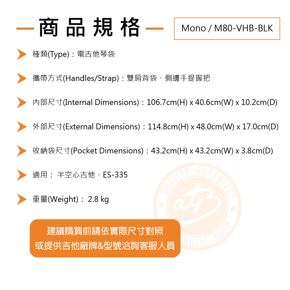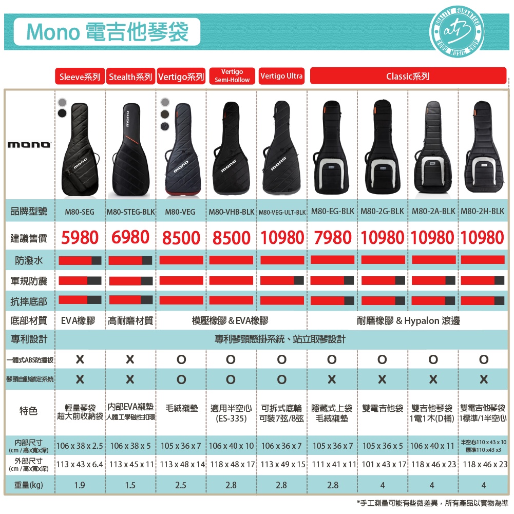Mono / Vertigo M80-VHB-BLK 軍規防潑水防撞電吉他琴袋(半空心)【樂器通】