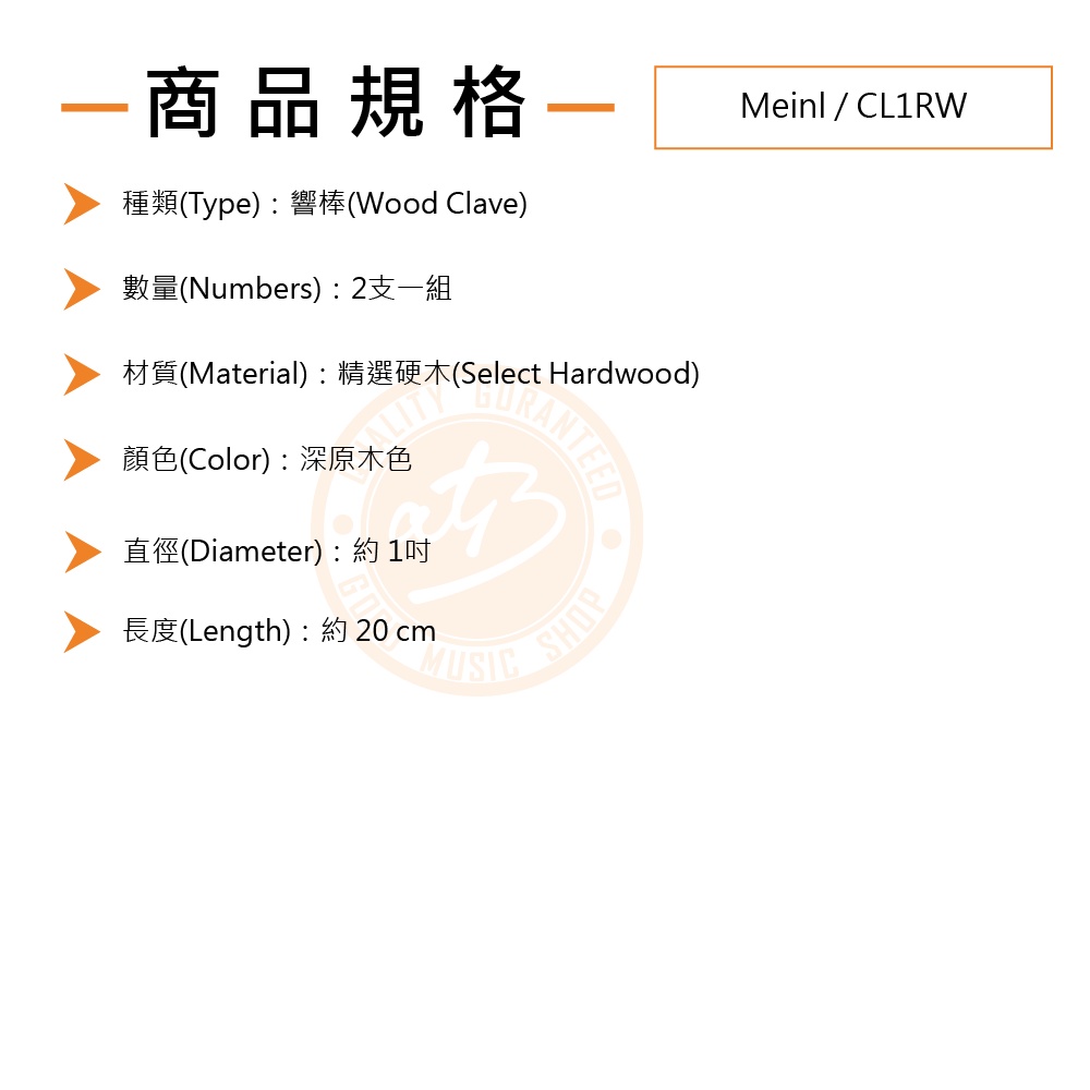 Meinl / CL1RW 原木實心響棒【樂器通】