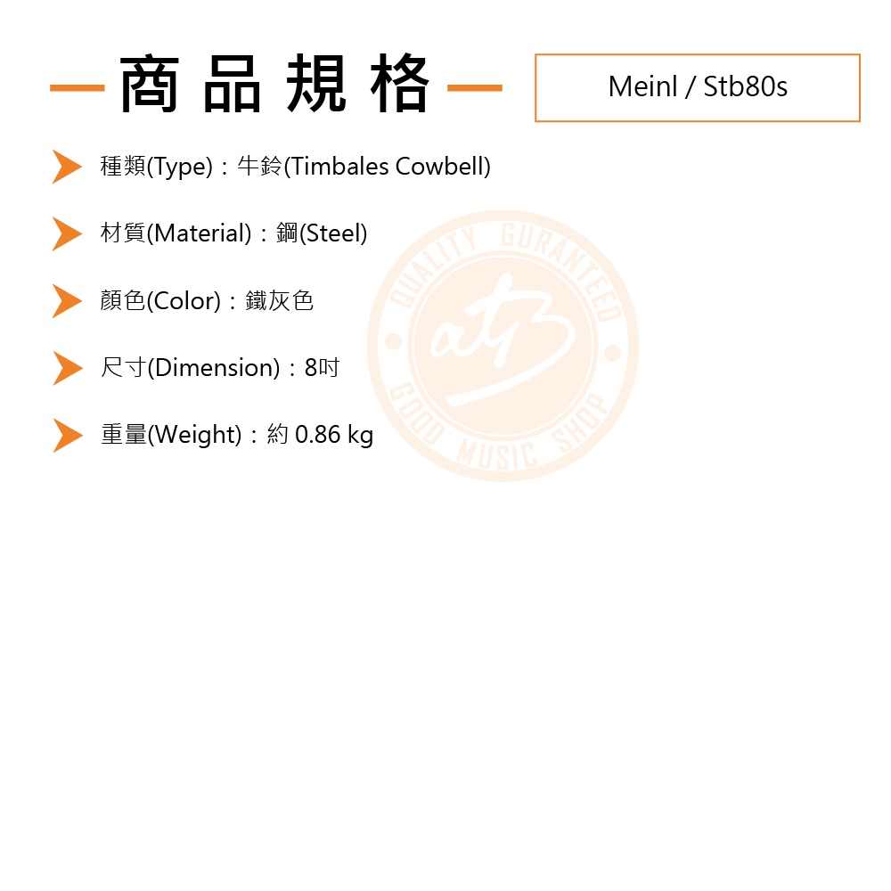 Meinl / Stb80s 8吋牛鈴Cowbell【樂器通】