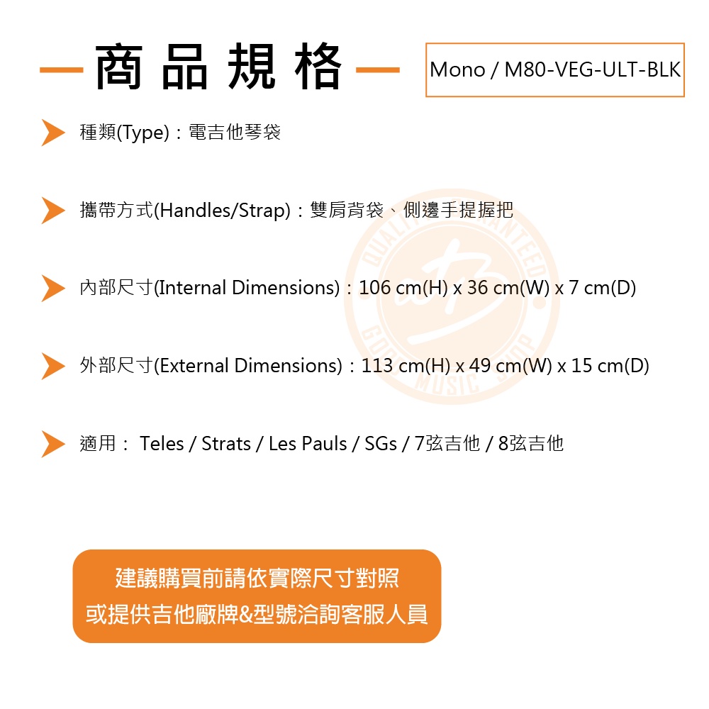 Mono / Vertigo M80-VEG-ULT-BLK 軍規防潑水電吉他琴袋(可拆式底輪)【樂器通】