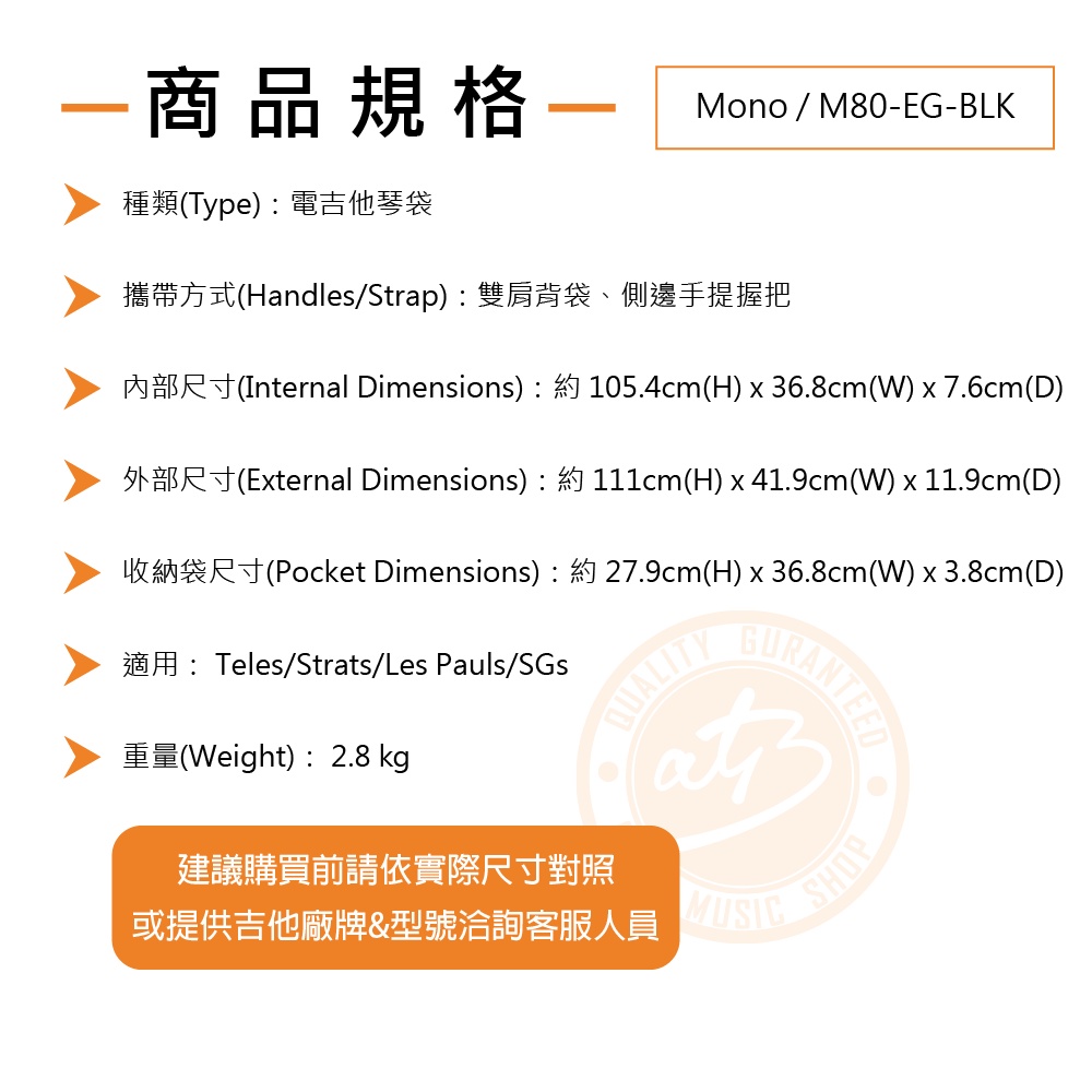 Mono / Classic M80-EG-BLK 專業防潑水電吉他琴袋【樂器通】