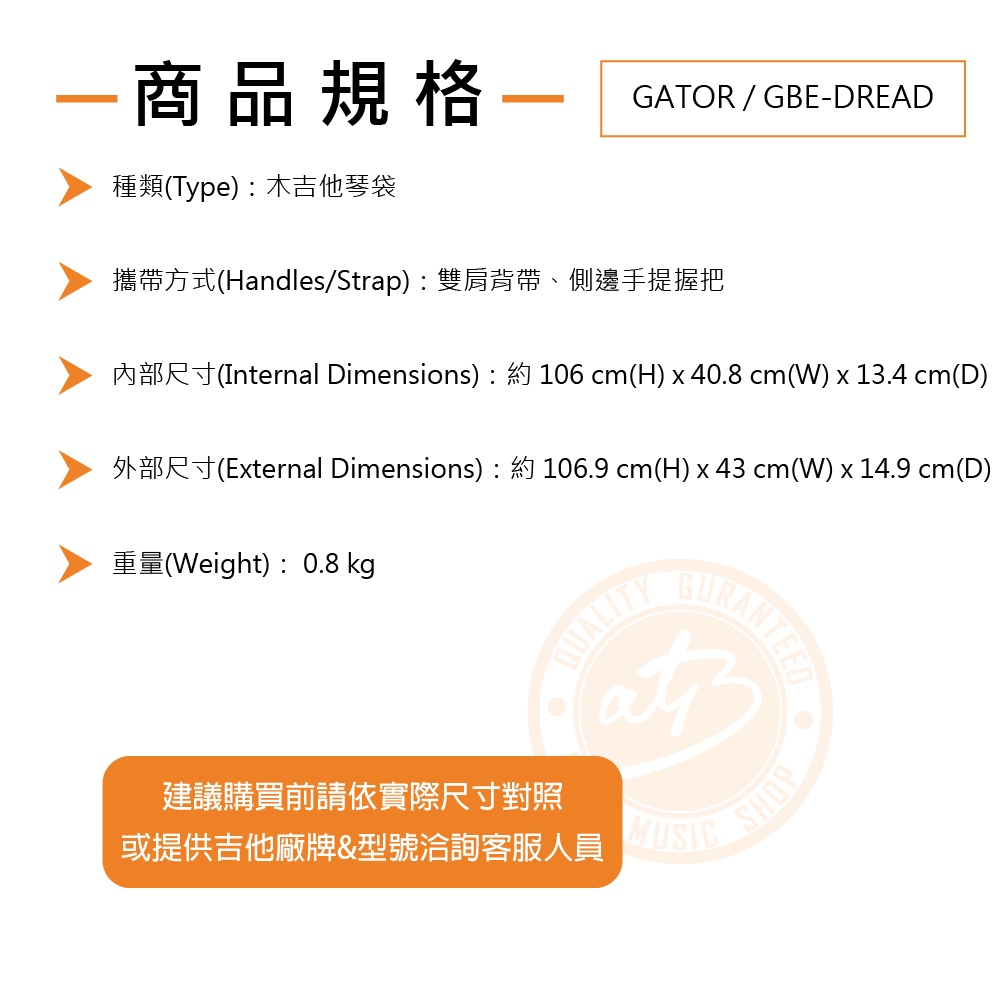 GATOR / GBE-DREAD 輕量防潑水木吉他琴袋【ATB通伯樂器音響】