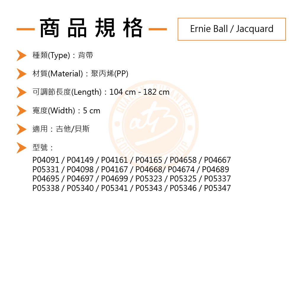 Ernie Ball / Jacquard 時尚繡花背帶(24色)【ATB通伯樂器音響】