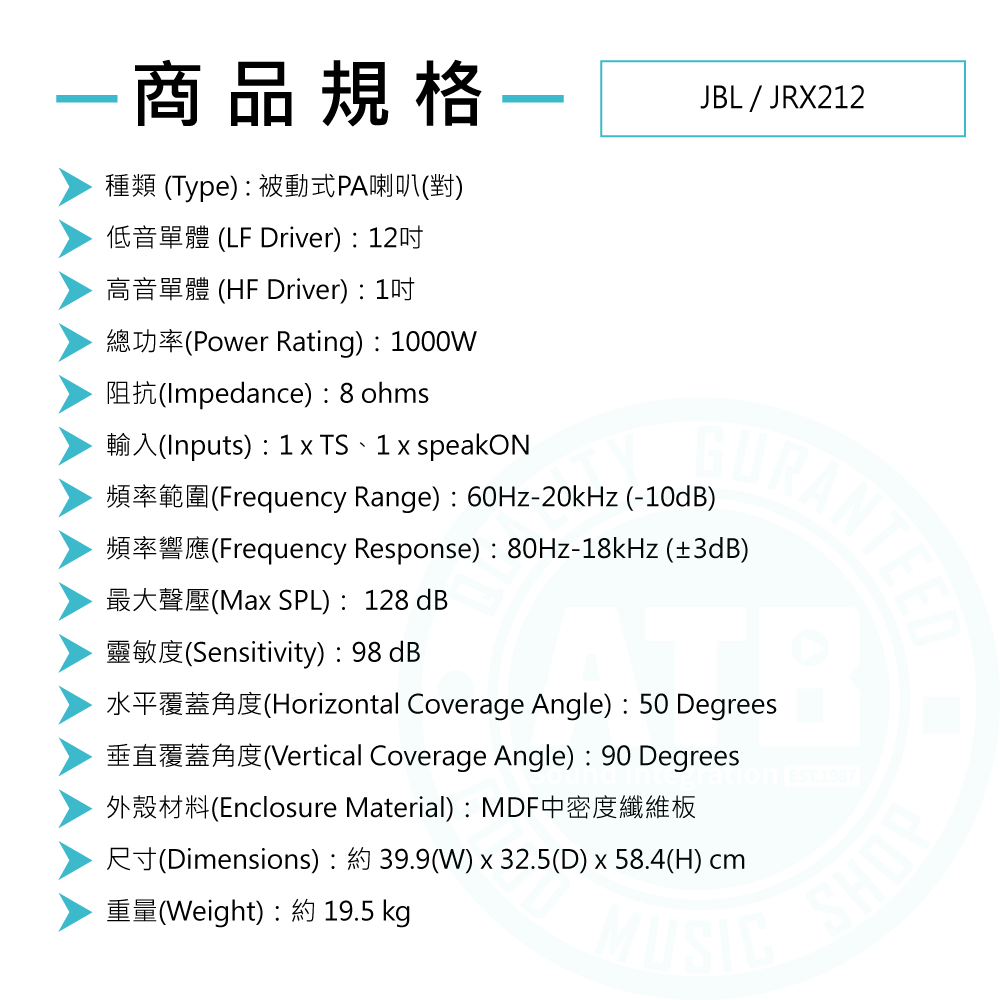 JBL / JRX212 被動式PA喇叭(12吋,1000W)(可斜躺監聽)(對) 台灣代理公司貨【ATB通伯樂器音響】