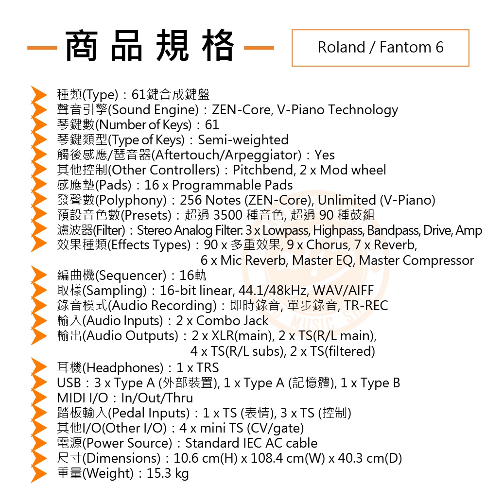 Roland / Fantom 6 61鍵合成鍵盤【ATB通伯樂器音響】