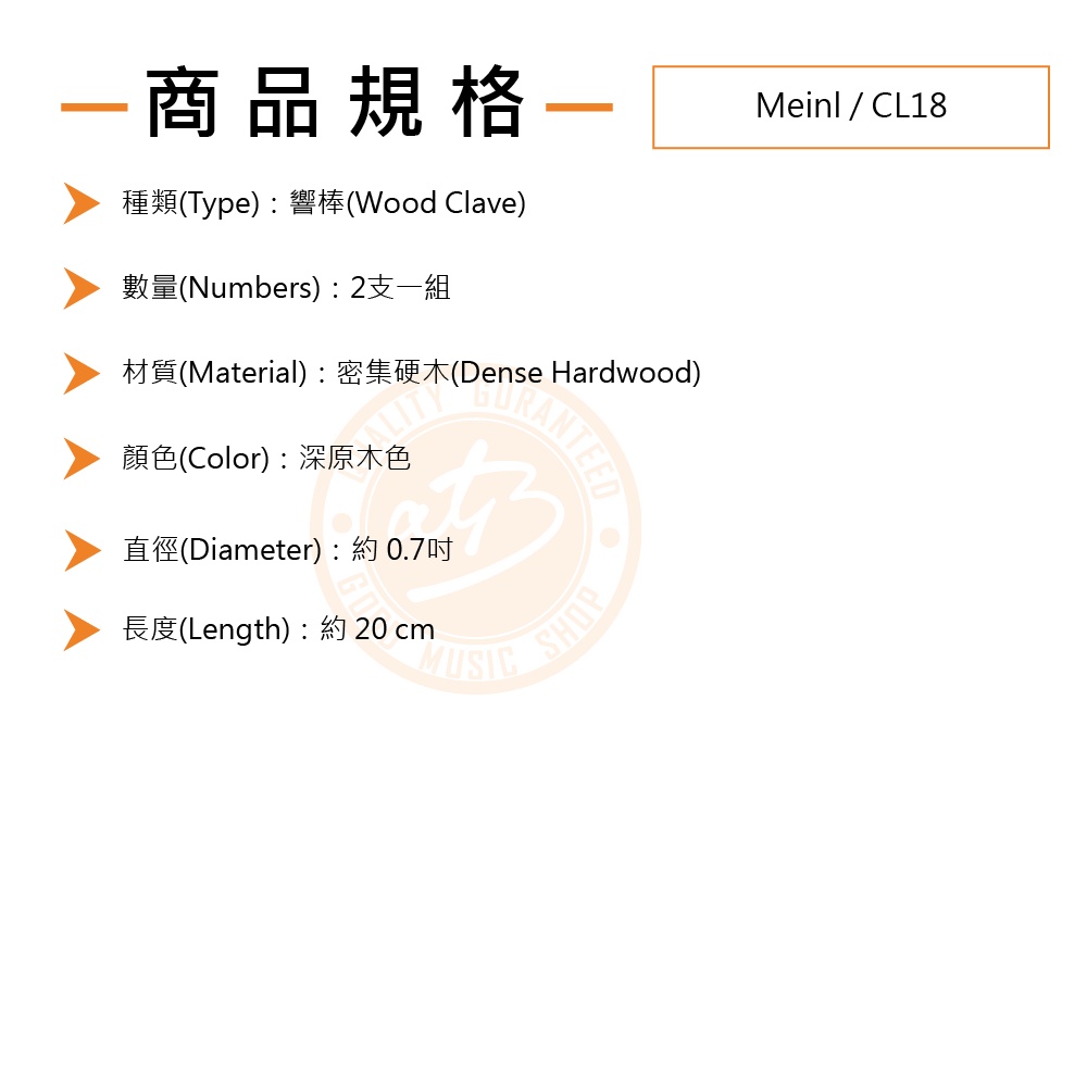 Meinl / CL18 原木實心細響棒【樂器通】